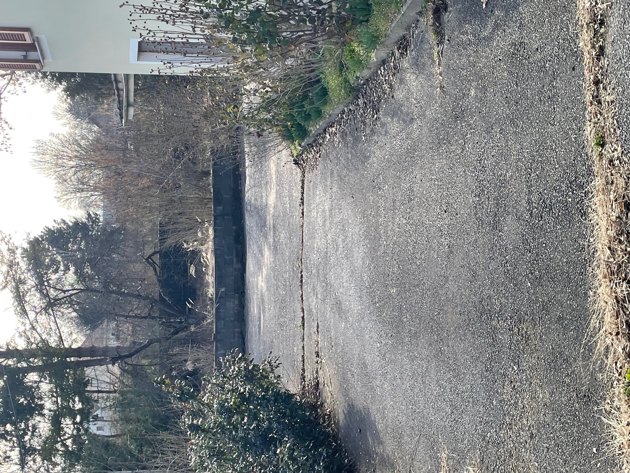 eingezäunter Garten, breite, asphaltierte Hauseinfahrt u. Hoffläche, Haustür (Einfahrtstor)
